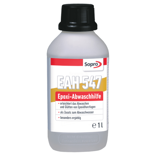 Sopro EAH 547 - высокоэффективное средство для смывания остатков эпоксидной затирки с плитки. Способствует лёгкому удалению остатков затирки, а также облегчает формирование гладкой поверхности швов. Препятствует образованию эпоксидного налёта на поверхности плитки. Облегчает удаление остатков затирки с инструмента после завершения работ. Препарат продаётся в концентрированном виде. Перед применением, необходимо разбавить водой.